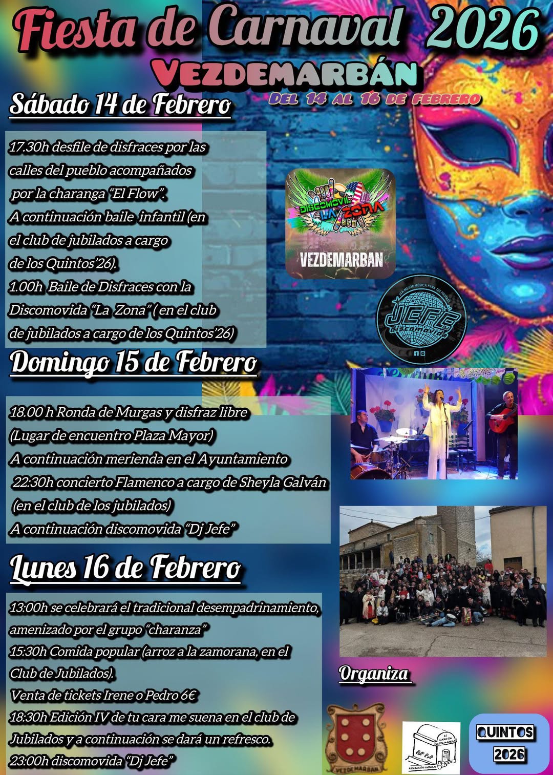 Fiesta de Carnaval en Vezdemarbán. Ven a disfrutar.Te esperamos.